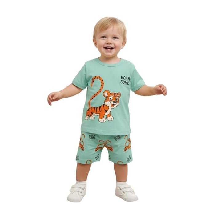 A.T.U.N. (ALL THINGS UBER NICE) Baby Boys and Girls Cotton Short Sleeve Printed T-Shirt and Shorts Set | Soft Printed Comfortable Clothing Set | Stylish Playtime Outfit for Unisex Babies