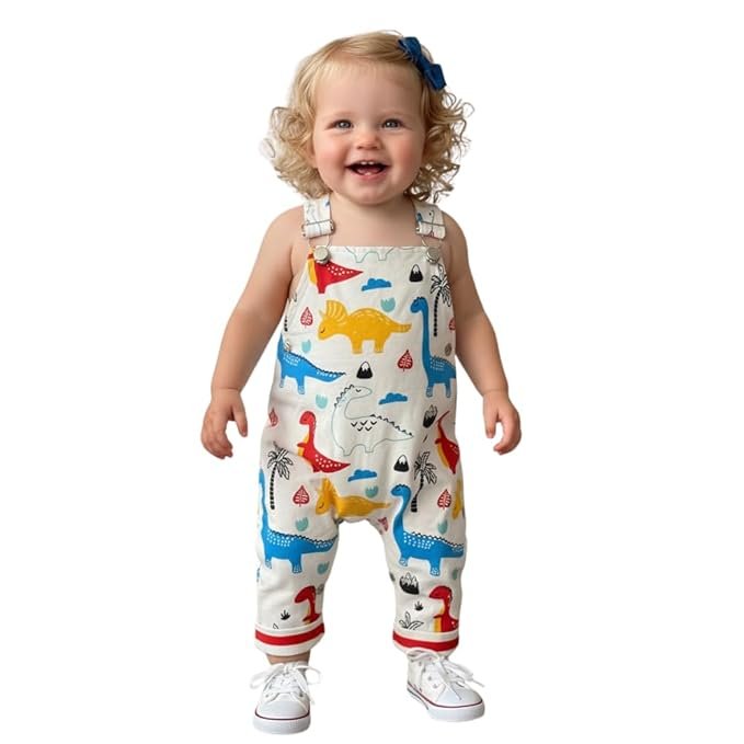 A.T.U.N. (ALL THINGS UBER NICE) Baby Boys & Girls Cotton Printed Dungaree | Soft Adjustable Strap Romper | Comfortable Playtime Outfit with Fun Dinosaur Print for Unisex Babies