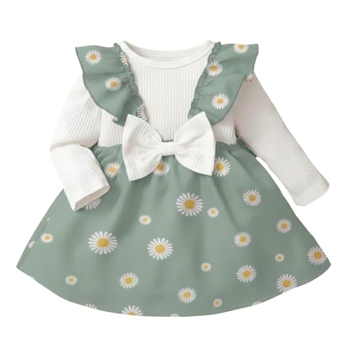 A.T.U.N. (ALL THINGS UBER NICE) Baby Girls Poly Silk Printed Dress with Bow Straps & Ruffle Sleeves | Stylish Winter Frock for Kids | Cute Long Sleeve Party Frock