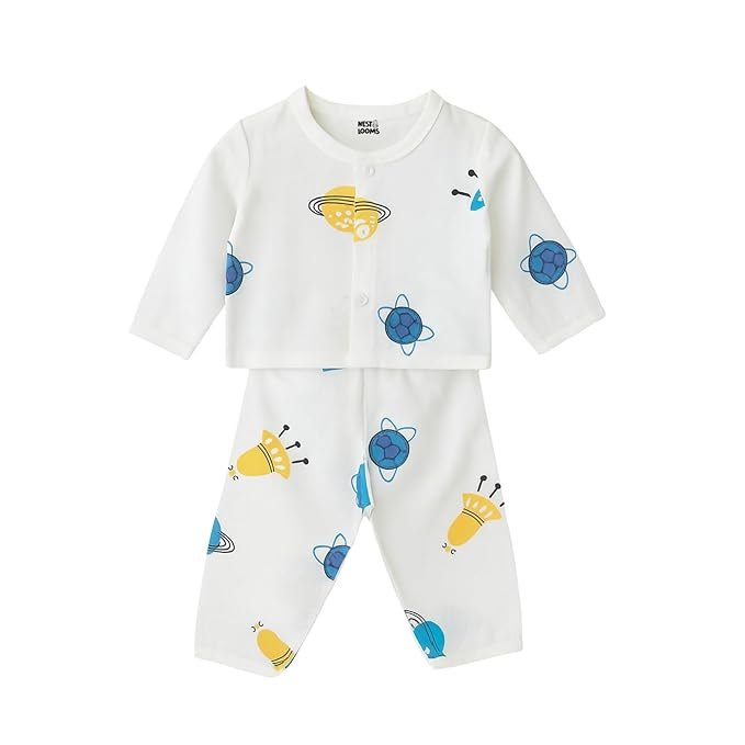 Baby Full Sleeves Soft Cotton muslin Casual Jhabla T-Shirt front open with Pyjama Pants, New Born Infant Clothes for Baby boy and girl, 100% Cotton Vests