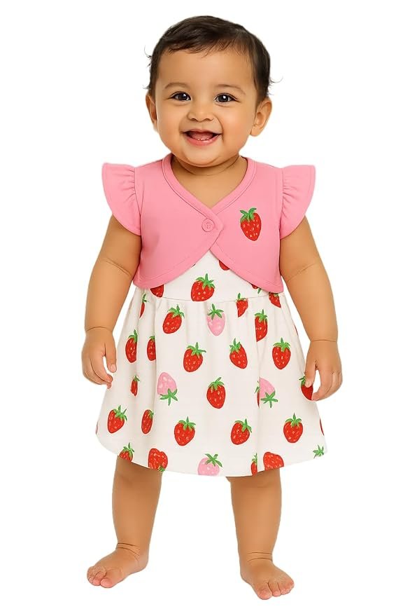 Baby Girls Cotton Frock Set – Sleeveless Frock with Overcoat for Babies- Style 10006 -Printed, Multicolour