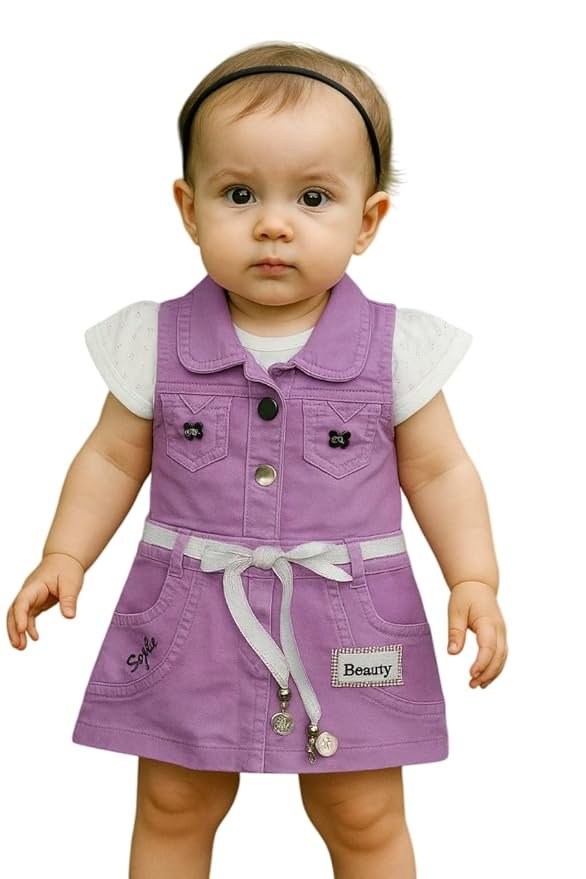 Baby Girls’ Denim Dungaree Set with White Printed Top | Adjustable Straps & Stylish Comfortable Fit for Kids