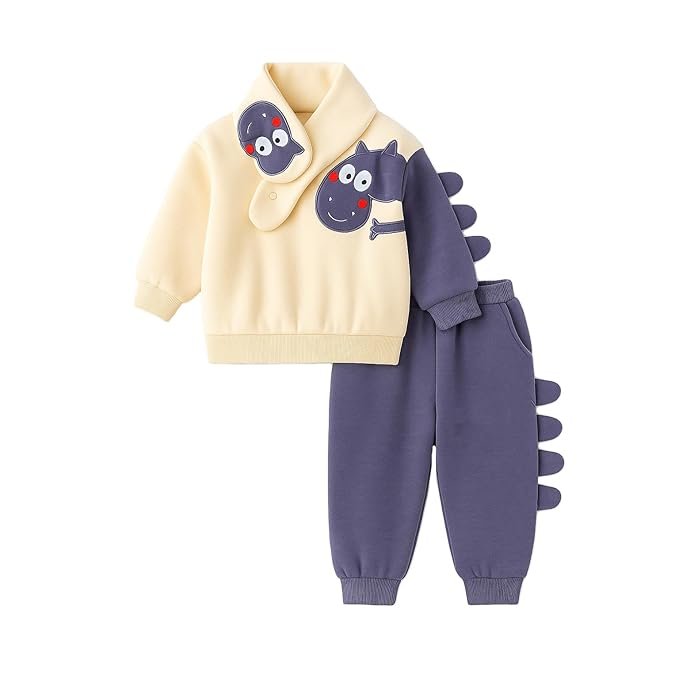 Bold N Elegant Kids Fleece Lined Winter Sweatshirt, Joggers & Muffler Set | Warm Dino & Panda Print Co-Ord Set for Boys & Girls Upto 6 Years