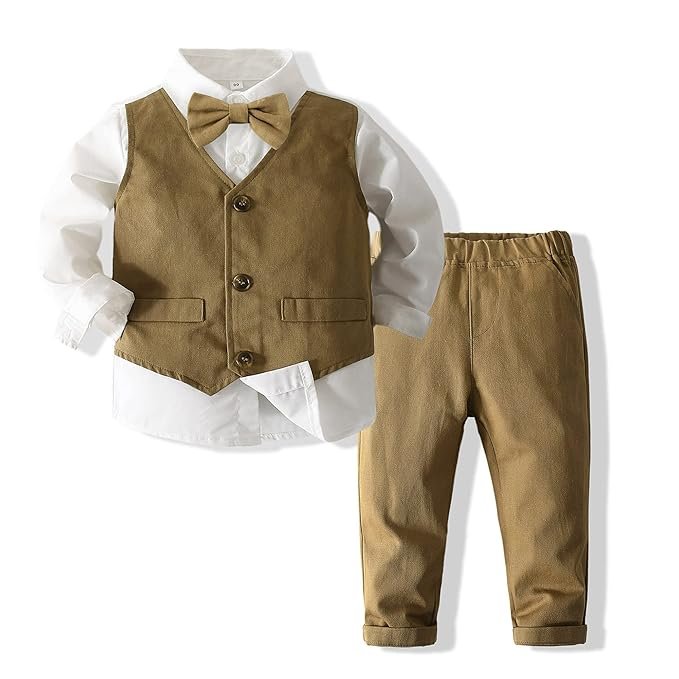Boys Long Sleeve Gentleman Outfits Suit Set Baby Boy Clothes Toddler Suit Wedding Tuxedo Outfit Fake 2 Pc Tops + Pant 1-6T