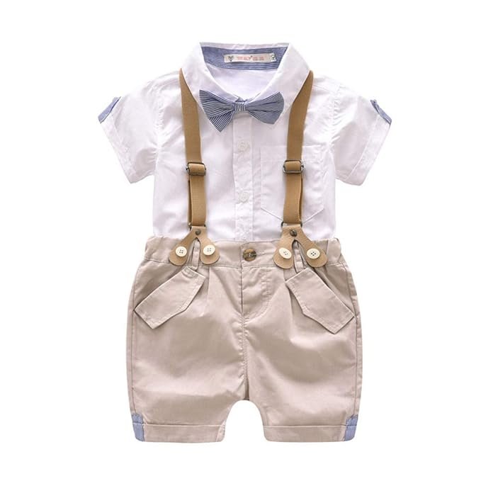 CosmicKolors® Stylish Gentleman Half Sleeves Shirt and Suspender Style Shorts Set | White Formal Clothing Set for Baby Boys