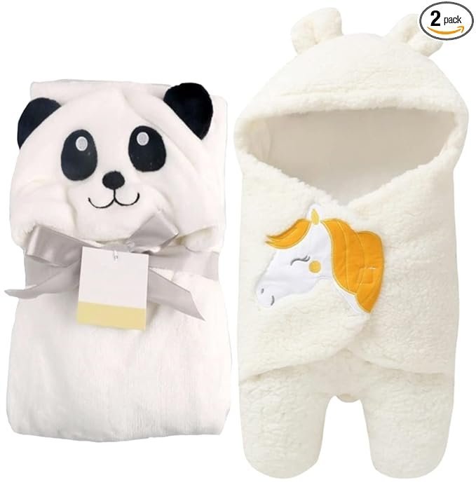 - Item : 2 Pcs very attractive baby blanket double layer spread sheet and a designer cartoon hooded blanket wrapper material: Soft flannel