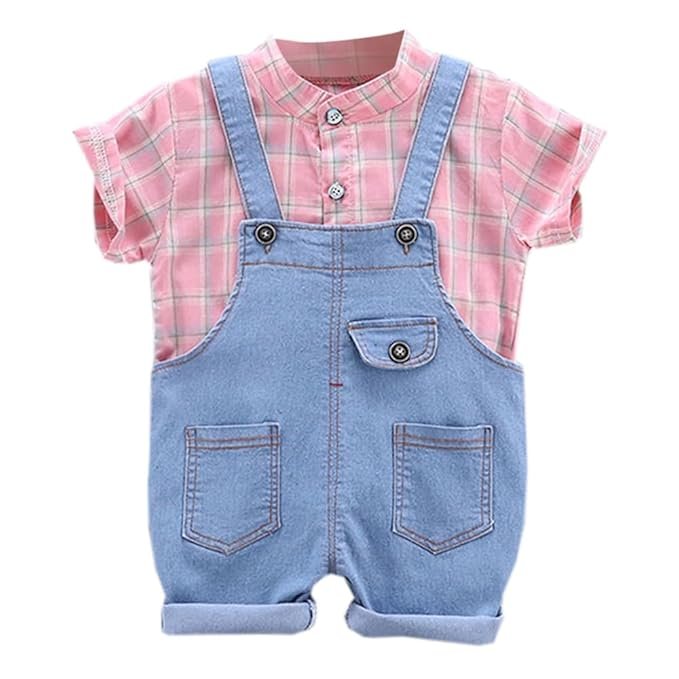 Hopscotch Boys Cotton Check Shirt And Dungaree Set In Green Color