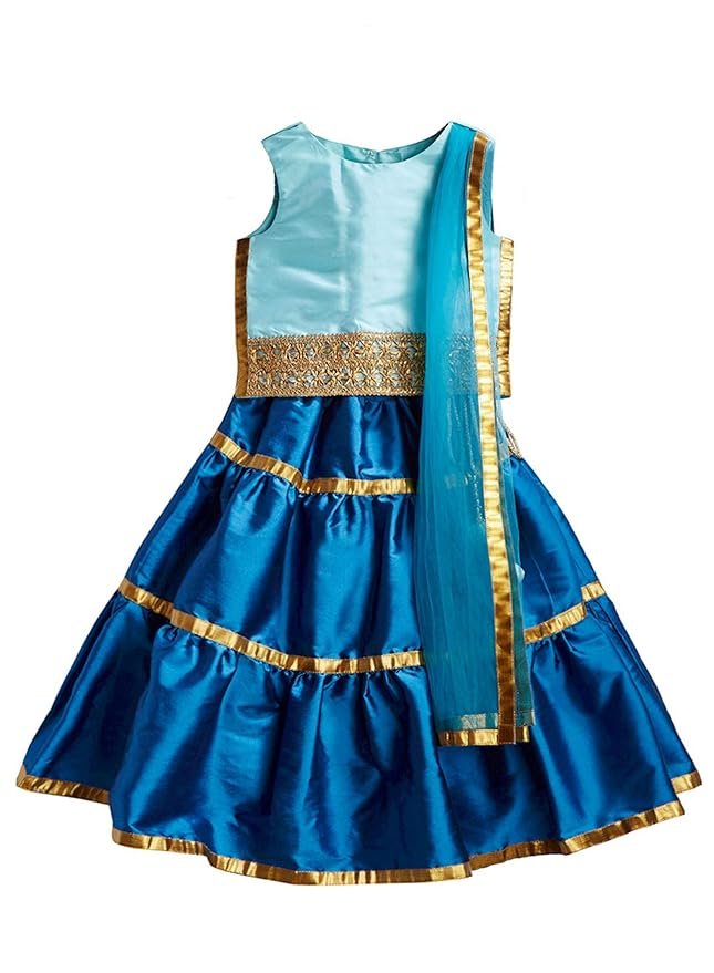 A.T.U.N. (ALL THINGS UBER NICE) Girls Gota Lace Tiered Readymade Lehenga Choli and Dupatta Set | Traditional Ethnic Wear Clothing Set for Festival Occasions