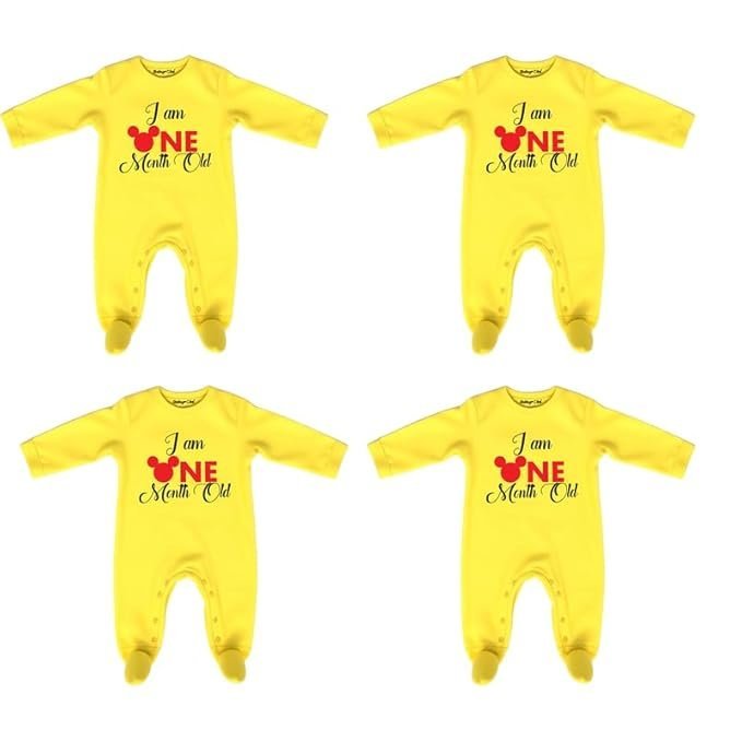 I Am One Month Old Baby Jumpsuit,New Born Baby Customised Name Baby Dress for Girl (Pack of 4) –