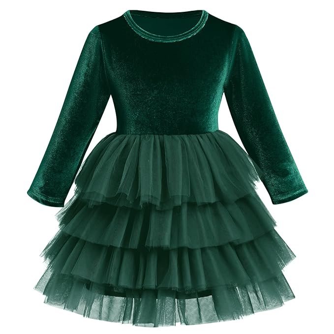 IKADEX Kids Baby Girls Long Sleeve Velvet Tulle Tutu Dress Fall Winter Birthday Christmas Party Dress