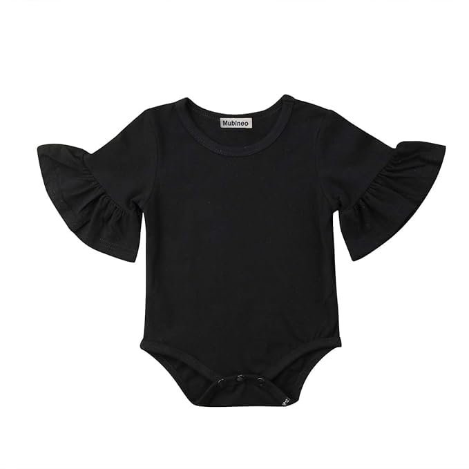 Infant Baby Girl Basic Bell Short Sleeve Cotton Romper Bodysuit Tops Clothes (Black, 0-3 Months)