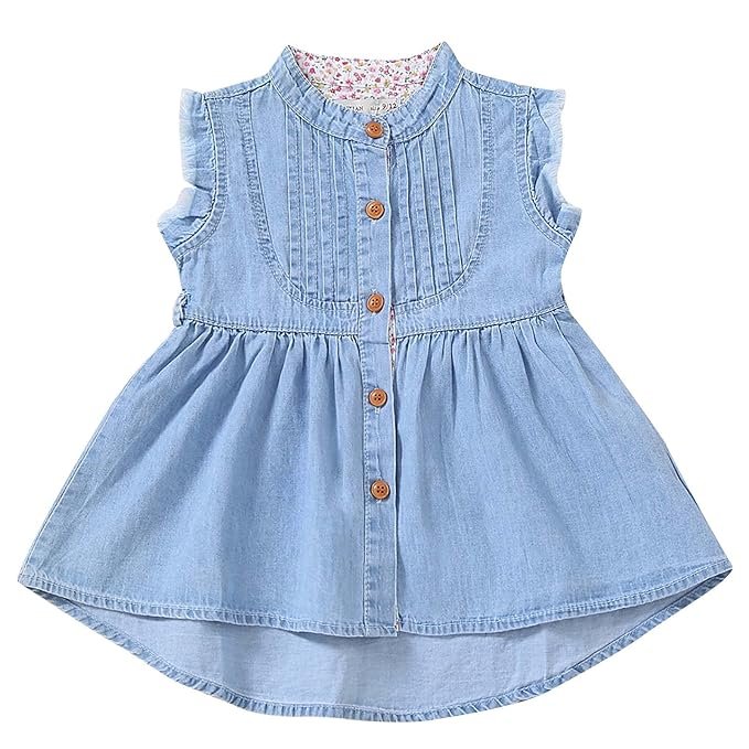 Summer Dresses, Toddler Baby Girls One Pocket Lovely Denim Dress Short Sleeve Button Skirt – (9 Month-5 Years)
