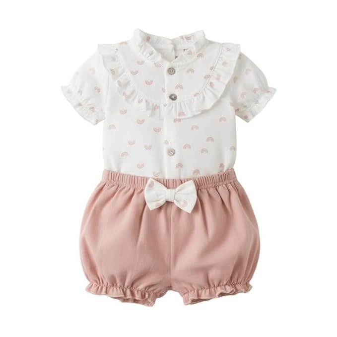 TBM Baby Girls Cotton Printed T-Shirt & Shorts Set | Peach Color | Soft & Stylish Infant Outfit with Bow | Comfortable Casual Wear Dress| Summer Fashion Baby Clothes