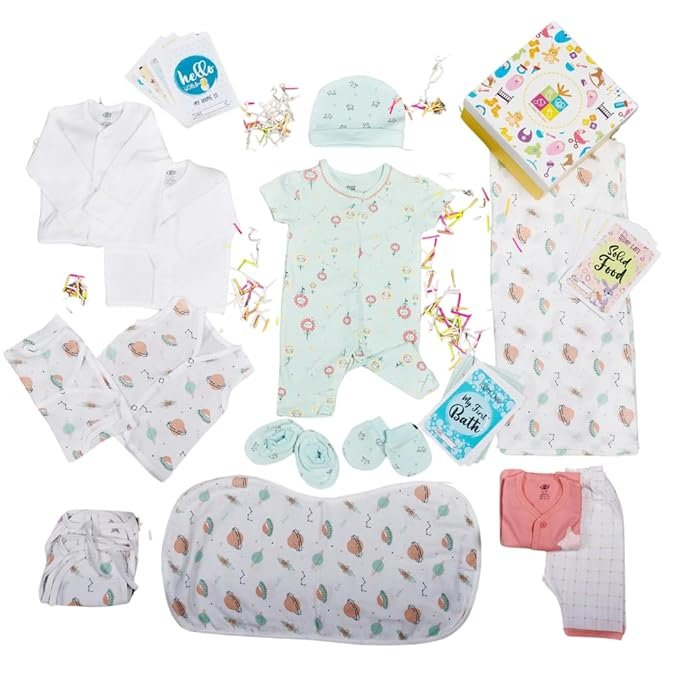 The Baby First Box Newborn Complete Clothing Set with Organic Muslin clothes – First Outfits with Gift Box | Baby Gifts | Newborn Clothes Set | Baby Shower Gifts | 0-3 Months | Pack of 12