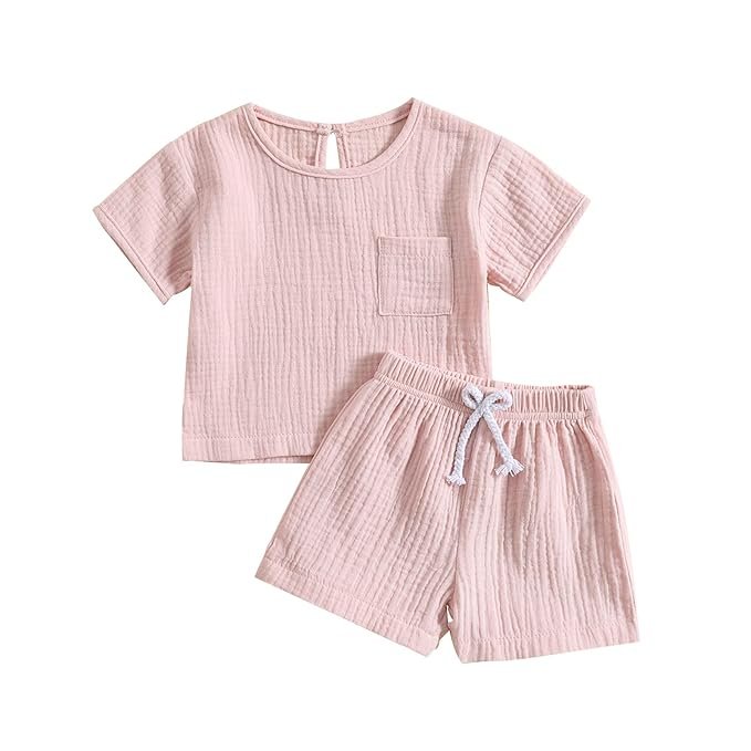 Toddler Baby Boy Girl Cotton Linen Outfit Short Sleeve T-Shirt Tops Elastic Shorts Set 2Pcs Casual Summer Clothes