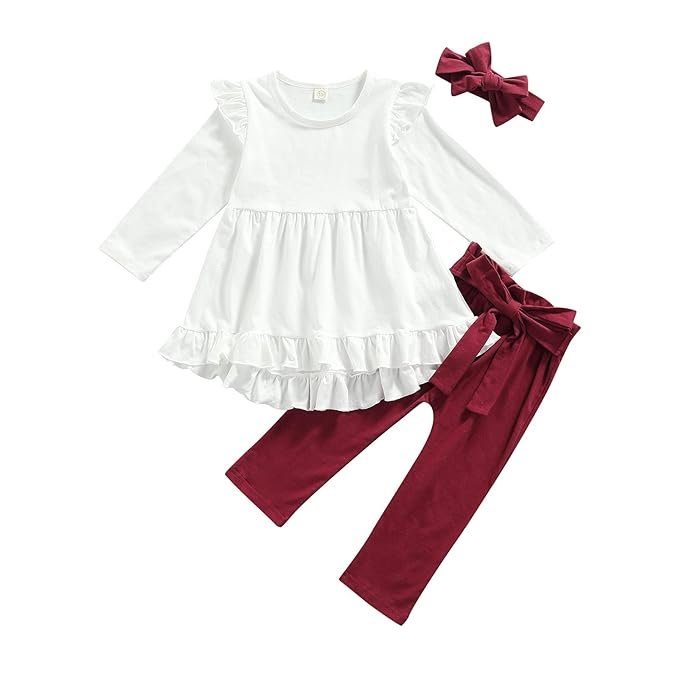 Toddler Kid Baby Girls Clothes Long Sleeve T-Shirt Dress Top Leggings Pants Set Headband 3Pcs Fall Winter Outfits
